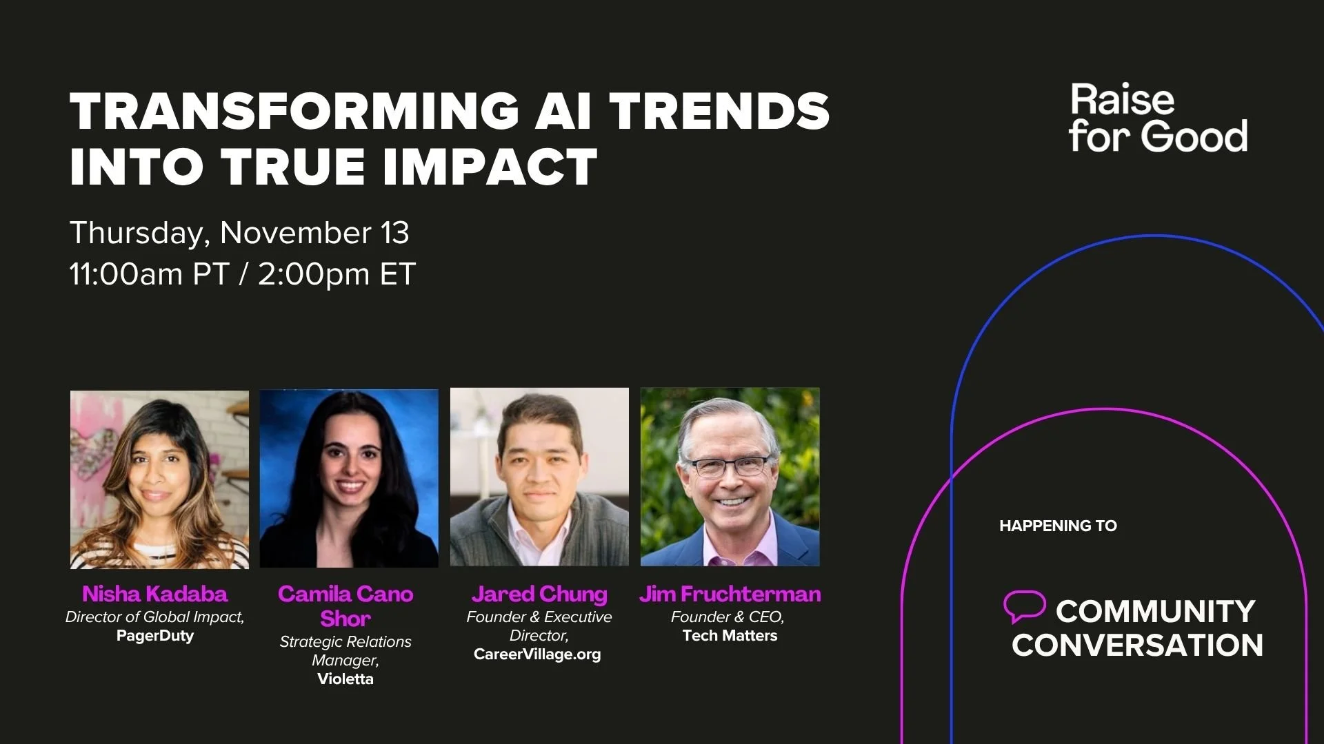 Our virtual panel discussions bring together funders, nonprofit leaders, and social impact practitioners to create space for connection, shared learning, and inspiration.